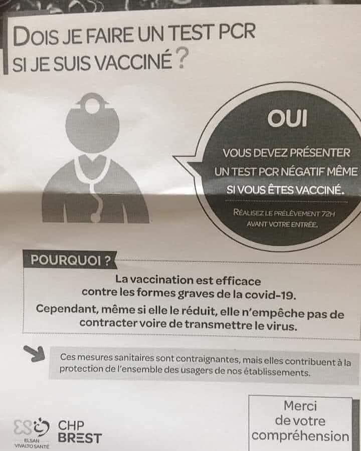 Pourquoi obliger les gens à subir une injection alors que l’on reconnait que celle-ci ne protège pas puisque que l’on oblige chacun à refaire des tests PCR ? Même un aveugle ou un sourd saurait détecter la traitrise et la malveillance…Un peu de bon sens…