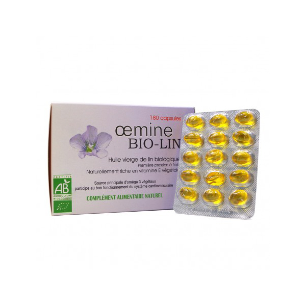 Complément alimentaire naturel à base d’huile de lin biologique, Oemine BIO-LIN se caractérise par sa richesse en oméga-3 végétaux. Chaque capsule contient aussi de la vitamine E naturelle destinée à protéger cette huile très fragile de l’oxydation.