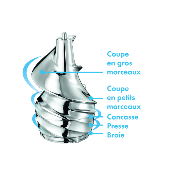 • Hélices de la vis conçues pour extraire rapidement le jus en 5 étapes