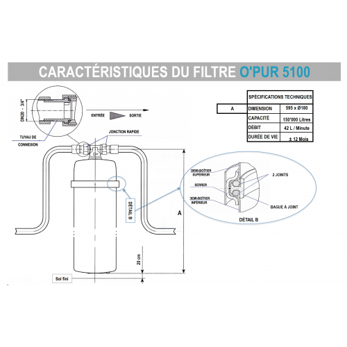 Durée de Vie du Filtre : EF: 150.000 Litres