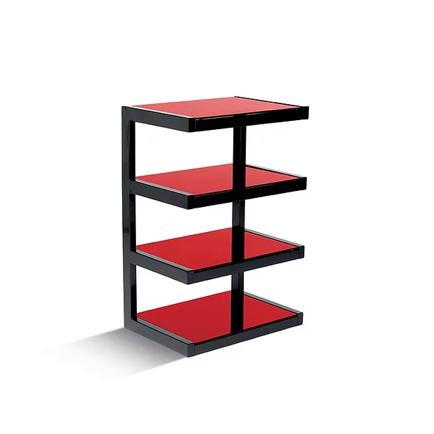 Acier laqué noir brillant Étagères Verre noir, Acier laqué noir brillant Étagères Verre rouge