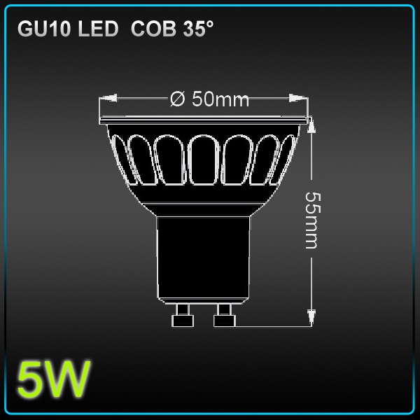 Ampoules LED COB 5W GU10 Gamme ECO Non dimmable. Angle d’éclairage semblable à l’halogène 35°