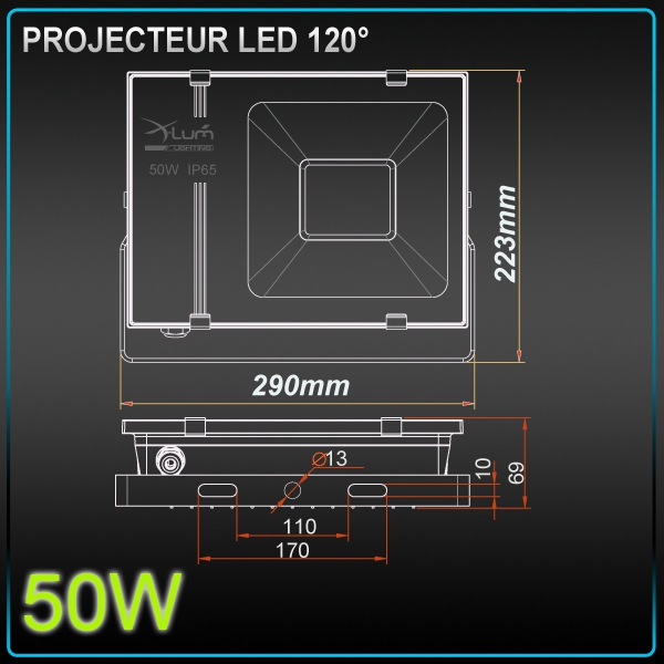 PROJECTEUR LED 50W 4500K 120° 230V 5620Lm BLACK